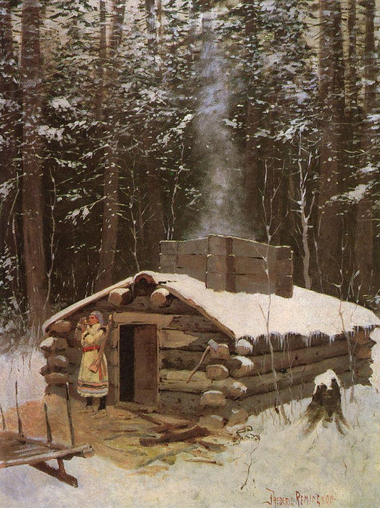 Cabin in the Woods White Modern Wood Framed Art Print with Double Matting by Remington, Frederic