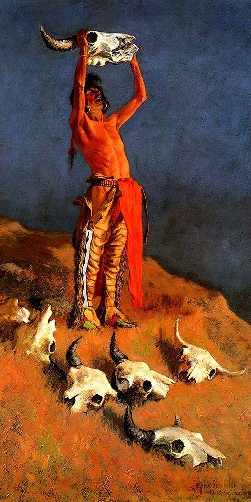 Conjuring Back the Buffalo White Modern Wood Framed Art Print with Double Matting by Remington, Frederic