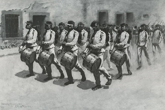 Drum Corps-Mexican Army-Sketch White Modern Wood Framed Art Print with Double Matting by Remington, Frederic