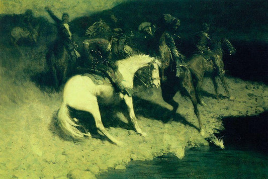 Indian Scouts in the Moonlight White Modern Wood Framed Art Print with Double Matting by Remington, Frederic
