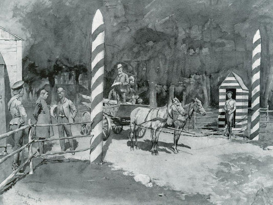 Frontier Guard and Custom House-Sketch White Modern Wood Framed Art Print with Double Matting by Remington, Frederic