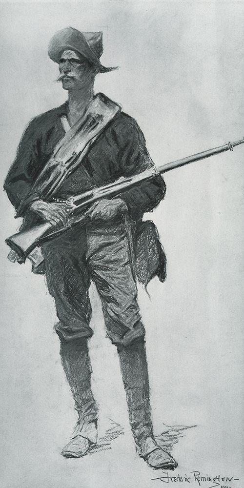 Infantry Soldier White Modern Wood Framed Art Print with Double Matting by Remington, Frederic