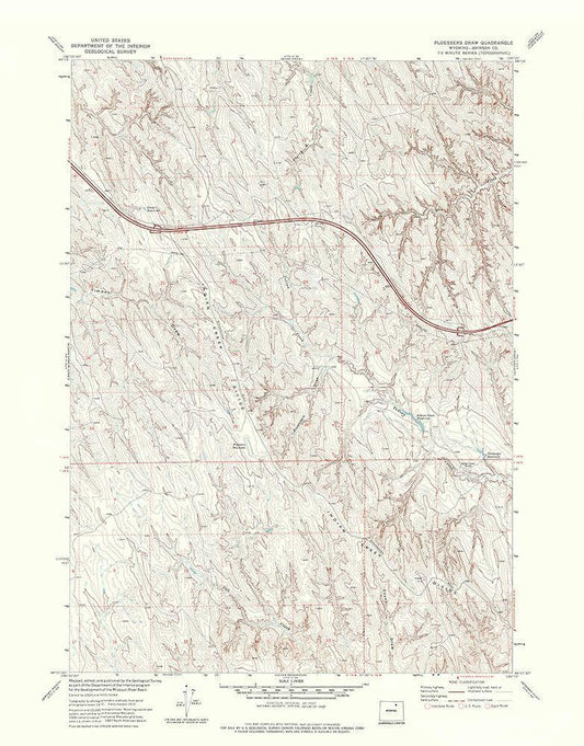 Ploessers Draw Wyoming Quad - USGS 1972 White Modern Wood Framed Art Print with Double Matting by USGS