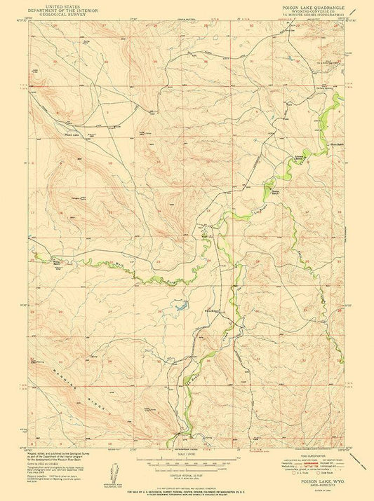 Poison Lake Wyoming Quad - USGS 1950 White Modern Wood Framed Art Print with Double Matting by USGS