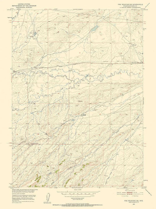 Pine Mountain Wyoming Quad - USGS 1951 White Modern Wood Framed Art Print with Double Matting by USGS