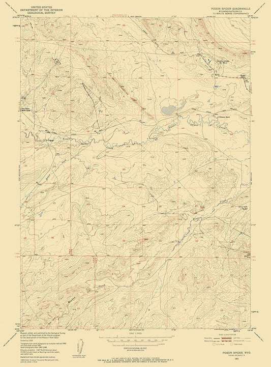 Poison Spider Wyoming Quad - USGS 1951 White Modern Wood Framed Art Print with Double Matting by USGS