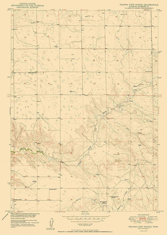 Prairie View School Wyoming Quad - USGS 1950 White Modern Wood Framed Art Print with Double Matting by USGS