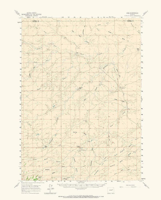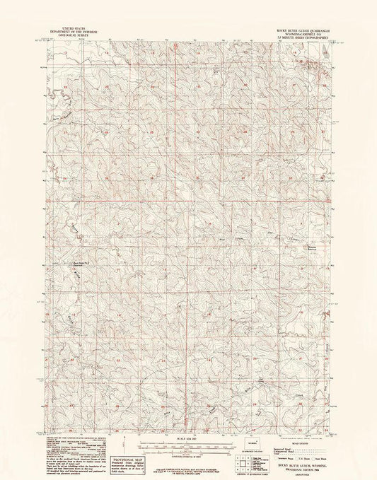 Rocky Butte Gulch Wyoming Quad - USGS 1984 White Modern Wood Framed Art Print with Double Matting by USGS