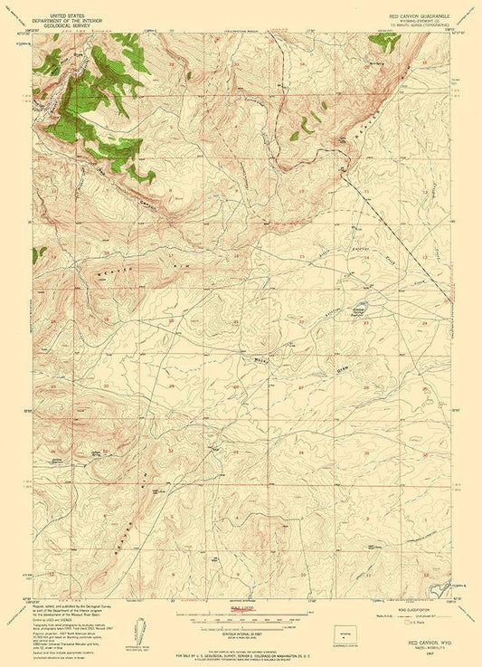 Red Canyon Wyoming Quad - USGS 1957 White Modern Wood Framed Art Print with Double Matting by USGS