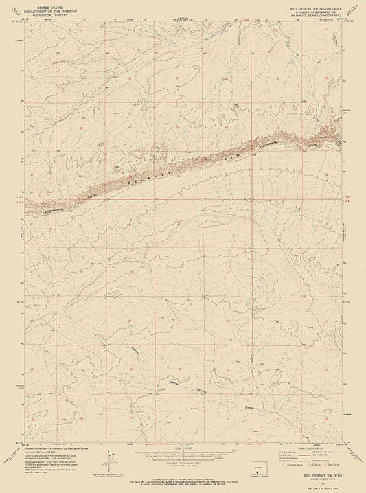 South West Red Desert Wyoming Quad - USGS 1970 White Modern Wood Framed Art Print with Double Matting by USGS