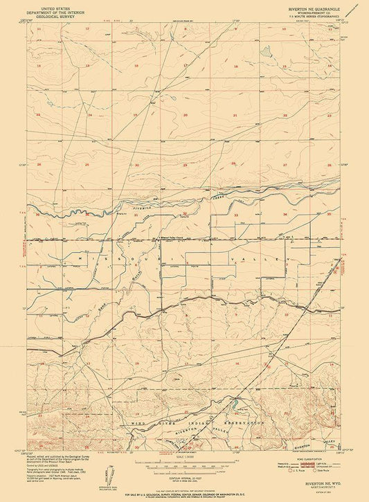 Riverton Wyoming Quad - USGS 1952 White Modern Wood Framed Art Print with Double Matting by USGS