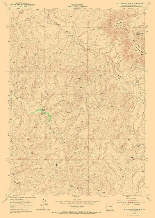 Rolling Pin Ranch Wyoming Quad - USGS 1953 White Modern Wood Framed Art Print with Double Matting by USGS