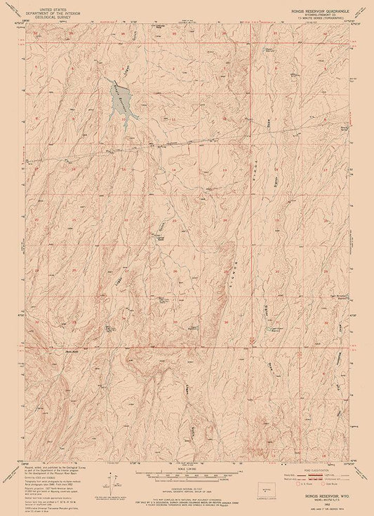 Rongis Reservoir Wyoming Quad - USGS 1952 White Modern Wood Framed Art Print with Double Matting by USGS