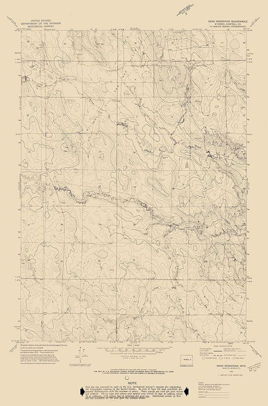 Reno Reservoir Wyoming Quad - USGS 1971 White Modern Wood Framed Art Print with Double Matting by USGS