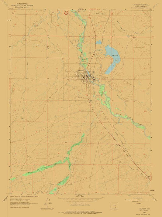 Saratoga Wyoming Quad - USGS 1961 White Modern Wood Framed Art Print with Double Matting by USGS