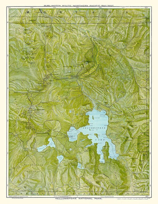 Yellowstone Park - Burlington Route 1898 White Modern Wood Framed Art Print with Double Matting by Poole