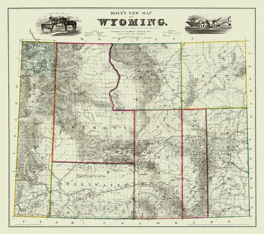 Wyoming - Holt 1883 White Modern Wood Framed Art Print with Double Matting by Holt