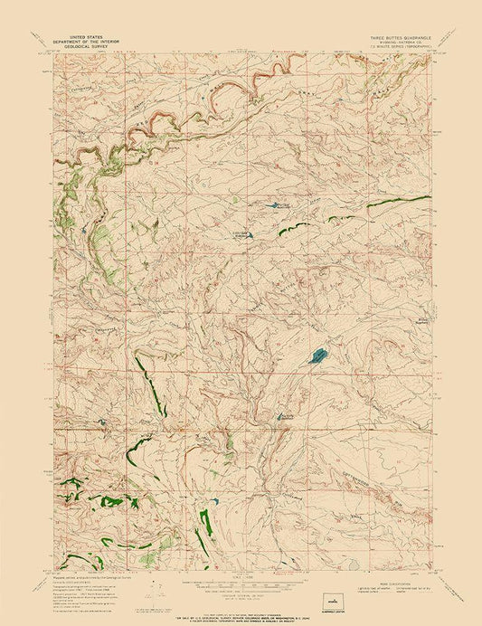 Three Buttes Wyoming Quad - USGS 1968 White Modern Wood Framed Art Print with Double Matting by USGS