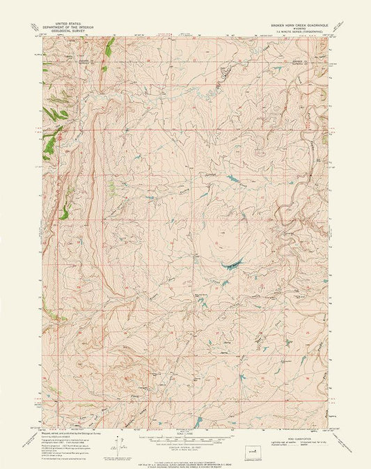 Broken Horn Creek Wyoming Quad - USGS 1968 White Modern Wood Framed Art Print with Double Matting by USGS