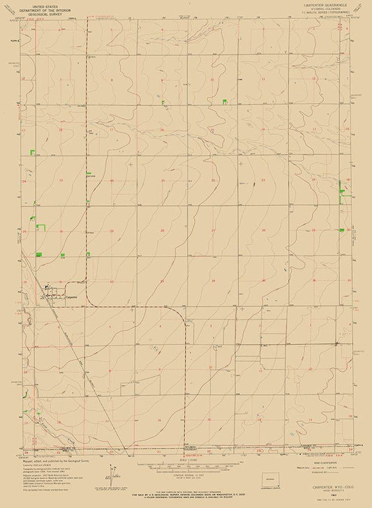 Carpenter Wyoming Quad - USGS 1963 White Modern Wood Framed Art Print with Double Matting by USGS