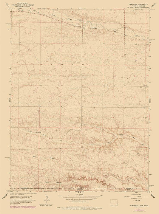 Antelope Creek Wyoming Quad - USGS 1950 White Modern Wood Framed Art Print with Double Matting by USGS