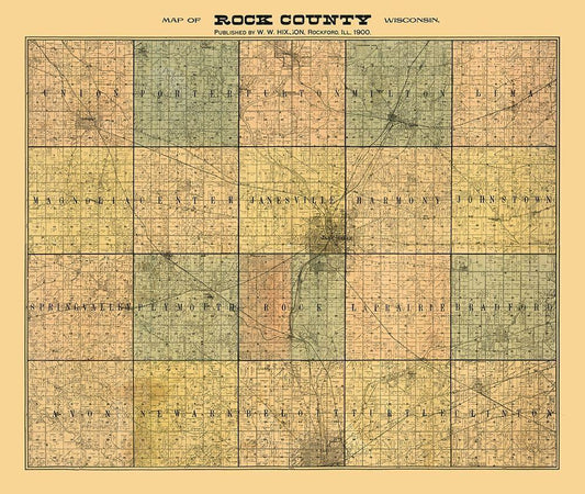 Rock County Wisconsin - Hixon 1900 White Modern Wood Framed Art Print with Double Matting by Hixon