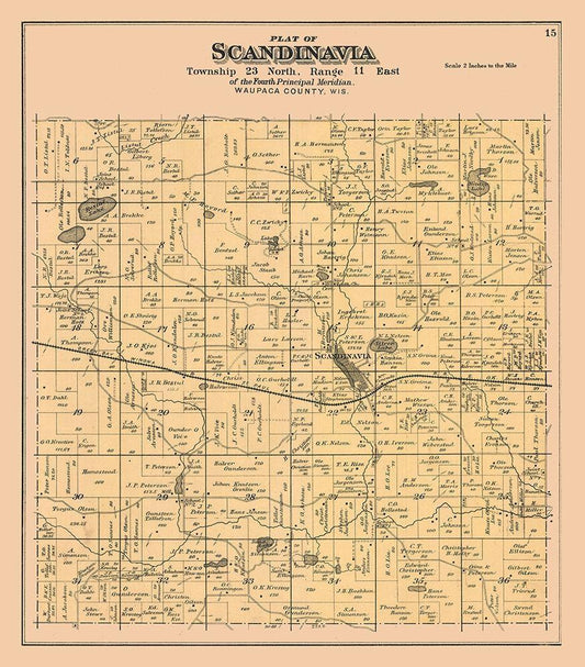 Scandinavia City Wisconsin - Foote 1889 White Modern Wood Framed Art Print with Double Matting by Foote