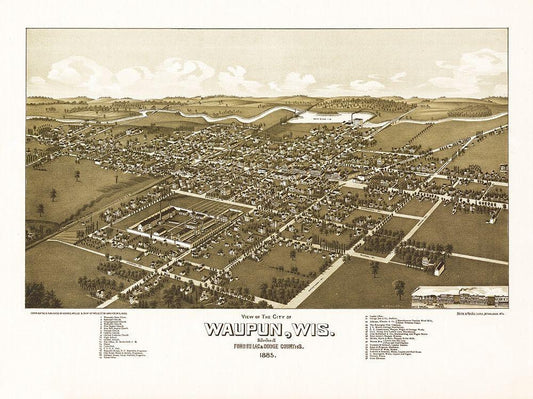 Waupun Wisconsin - Norris 1885 White Modern Wood Framed Art Print with Double Matting by Norris