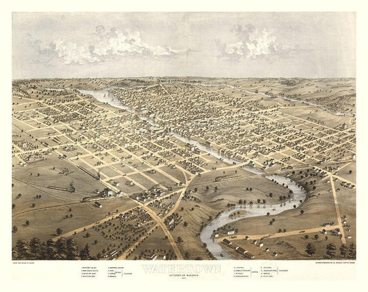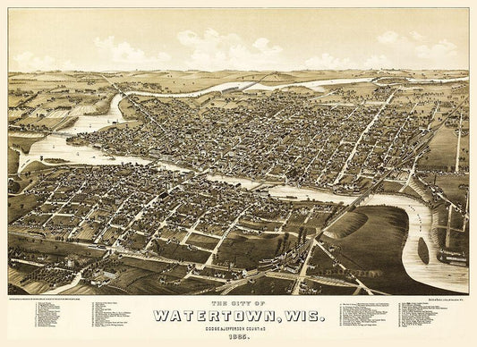Watertown Wisconsin - Norris 1885 White Modern Wood Framed Art Print with Double Matting by Norris
