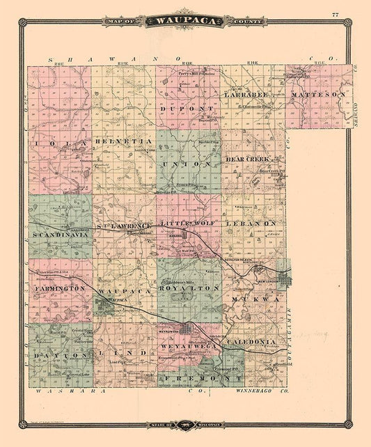 Waupaca County Wisconsin - Snyder 1877 White Modern Wood Framed Art Print with Double Matting by Snyder