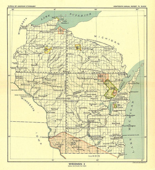 Wisconsin - Hoen 1896 White Modern Wood Framed Art Print with Double Matting by Hoen