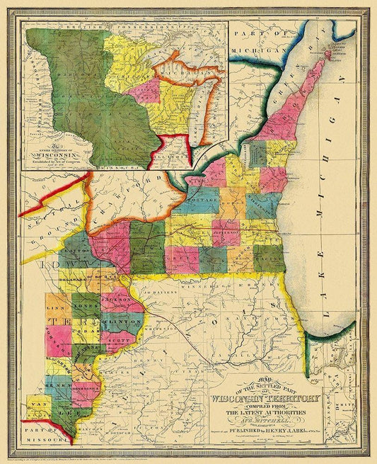 Wisconsin Territory - Abel 1838 White Modern Wood Framed Art Print with Double Matting by Abel