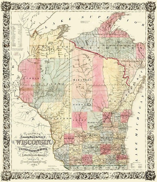 Wisconsin - Colton 1851 White Modern Wood Framed Art Print with Double Matting by Colton
