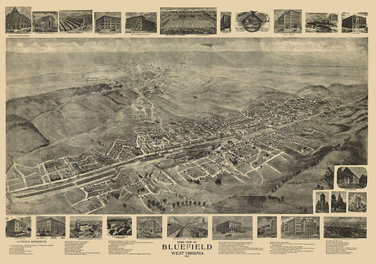 Bluefield West Virginia - Fowler 1911 White Modern Wood Framed Art Print with Double Matting by Fowler