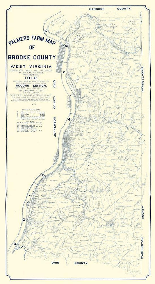 Brooke County West Virginia - Palmer 1912 White Modern Wood Framed Art Print with Double Matting by Palmer