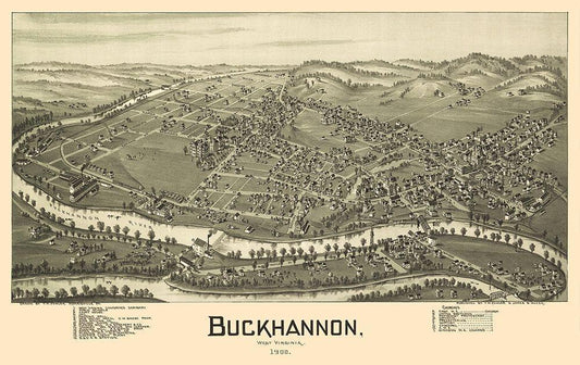 Buckhannon West Virginia - Fowler 1900 White Modern Wood Framed Art Print with Double Matting by Fowler