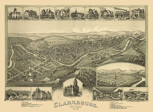 Clarksburg West Virginia - Fowler 1898 White Modern Wood Framed Art Print with Double Matting by Fowler