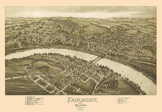 Fairmont Palatine West Virginia - Fowler 1897 White Modern Wood Framed Art Print with Double Matting by Fowler