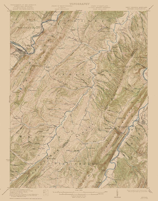 Keyser West Virginia Maryland Quad - USGS 1920 White Modern Wood Framed Art Print with Double Matting by USGS