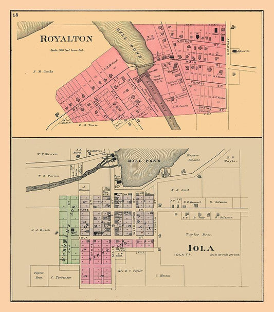 Royalton, Iola Wisconsi - Foote 1889 White Modern Wood Framed Art Print with Double Matting by Foote
