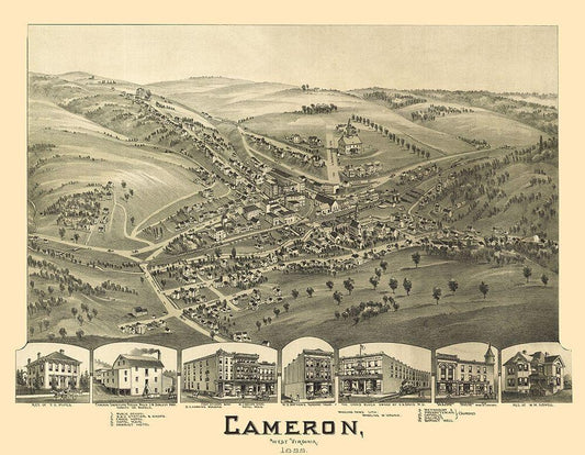 Cameron West Virginia - Fowler 1899 White Modern Wood Framed Art Print with Double Matting by Fowler