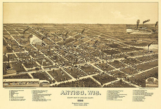 Antigo Wisconsin - Norris 1886 White Modern Wood Framed Art Print with Double Matting by Norris