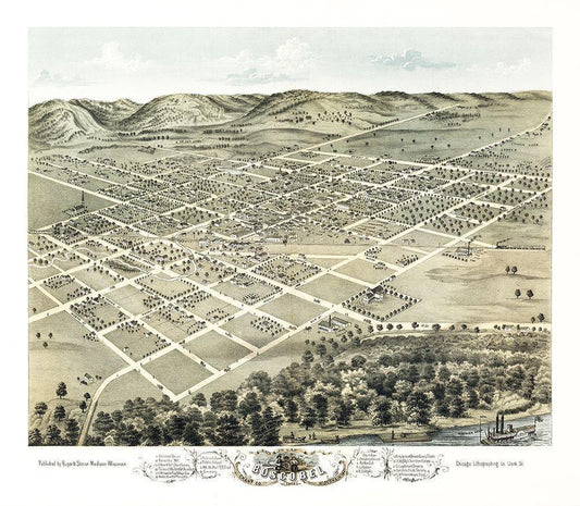 Boscobel Wisconsin - Stoner 1869 White Modern Wood Framed Art Print with Double Matting by Stoner
