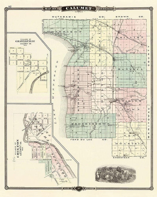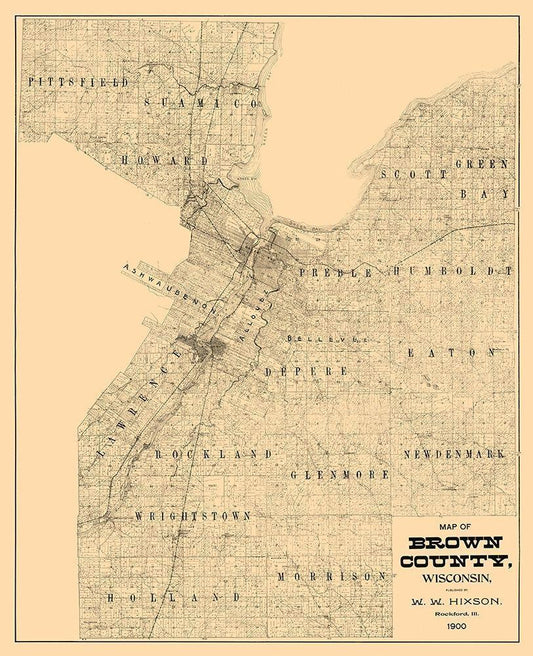 Brown County Wisconsin - Hixon 1900 White Modern Wood Framed Art Print with Double Matting by Hixon