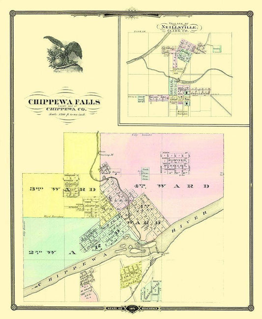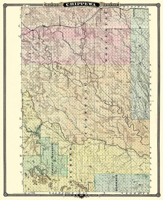 Chippewa North Wisconsin - Snyder 1878 White Modern Wood Framed Art Print with Double Matting by Snyder