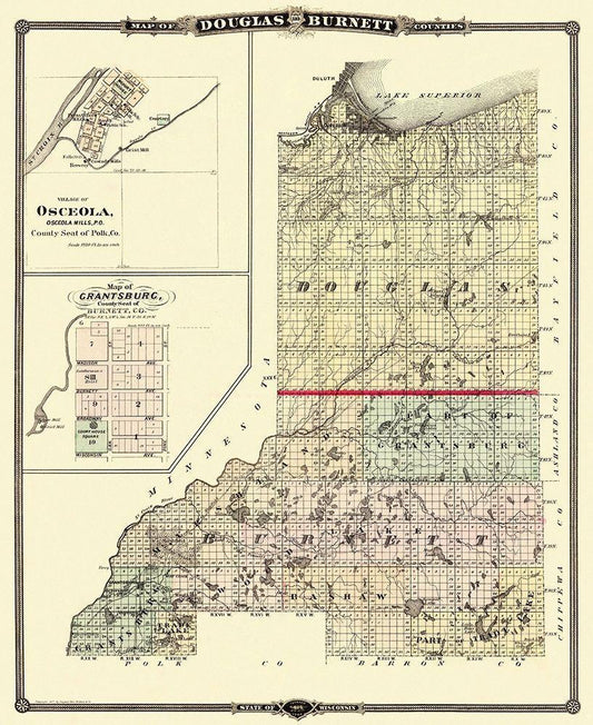 Douglas Burnett Wisconsin - Snyder 1877 White Modern Wood Framed Art Print with Double Matting by Snyder