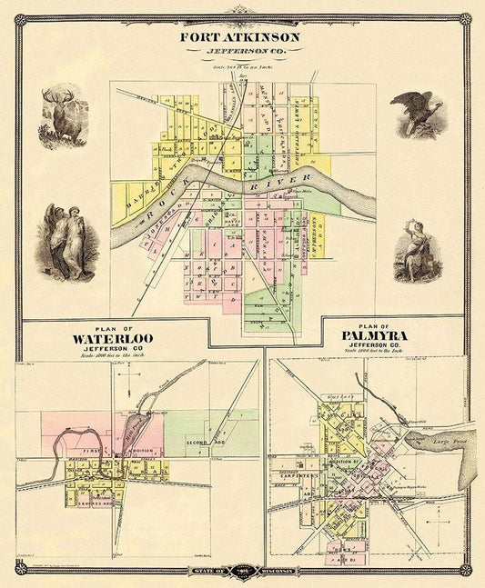 Fort Atkinson Wisconsin Landowner - Snyder 1878 White Modern Wood Framed Art Print with Double Matting by Snyder