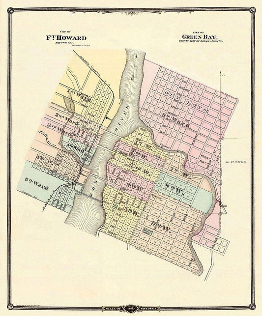 Ft Howard, Green Bay Wisconsin - Snyder 1877 White Modern Wood Framed Art Print with Double Matting by Snyder