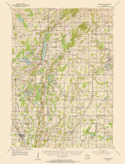 Kewaskum Wisconsin Quad - USGS 1955 White Modern Wood Framed Art Print with Double Matting by USGS