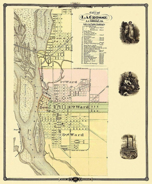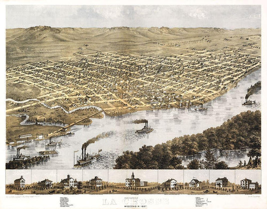 La Crosse Wisconsin - Ruger 1867 White Modern Wood Framed Art Print with Double Matting by Ruger